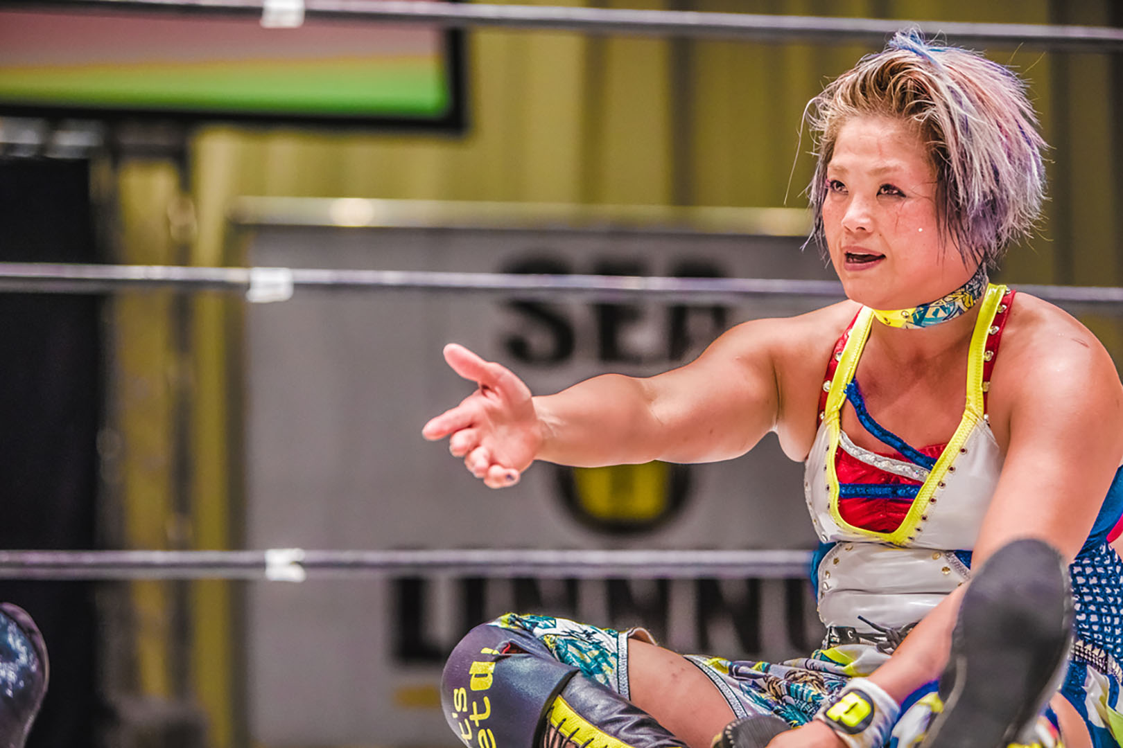 松本 おい奈七永! ロープを跨いでやったぞ。みんな待ってただろ、おら! ロープをな、跨ぐなと言われて、跨がない奴はな、レスラーじゃねえんだよ! 負けたまんまで引き下がる松本浩代じゃない。だいたい高橋奈七永、お前、主役気取ってるけどな、それってさ、プロレス界、望んでないと思うんだよね。あんたのエゴ。私がSEAdLINNNGのロープを跨いだからには、まずはお前に借りを返す。お前をぶっ倒す。そしてSEAdLINNNG、変えてやるよ!