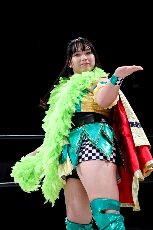 彩羽「自分は本当に恩返しがしたいんです。自分をレスラーとして育ててくれたのは高橋奈七永であり、世志琥さんでもあります。自分が本当にプロレスを辞めようかなとか、本当にもうどん底まで落ちてた時に引き上げてくれたのもこの二人です。だから自分は恩返しというのは勝つ事よりも、やばい試合をして、ここ(後楽園)満席にしましょうよ。だから、このベルトを懸けて戦うのは自分なんで、そこんとこ、ヨロシク」