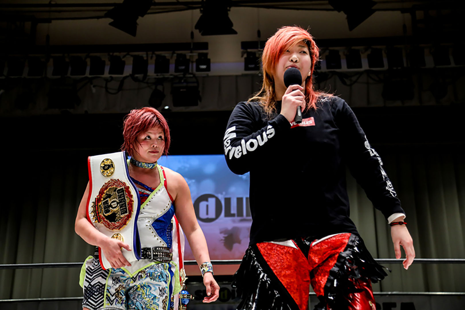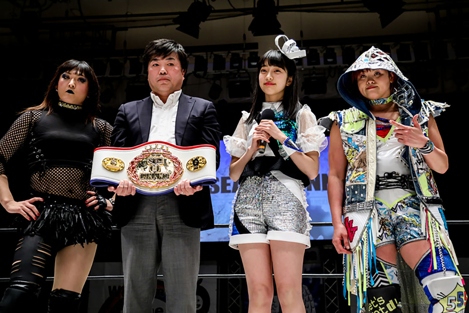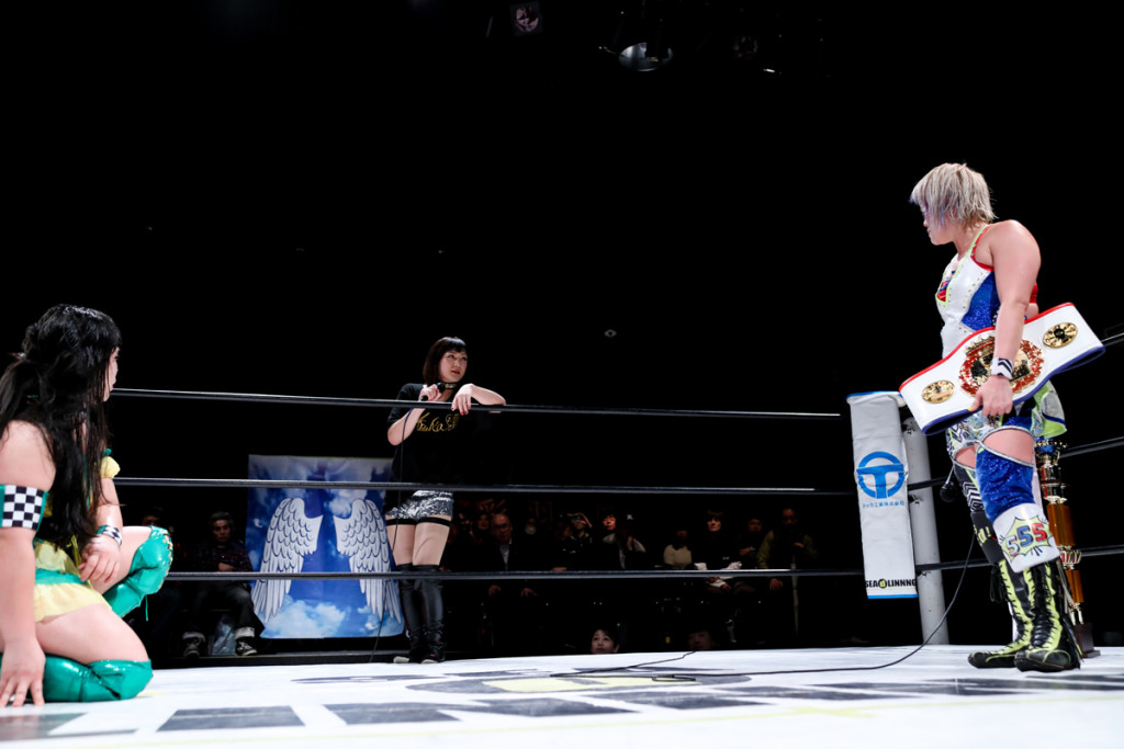 (世志琥退場後)今日はありがとうございました。2019年1発目、後楽園ホール、そして初めての防衛戦、お陰様で勝利する事が出来ました。ありがとうございました。でも、でも私はもっともっと、もっともっとプロレスを愛してもっともっとプロレスを皆さんに伝えていきたい。その為にはまだまだまだまだ座る所がいっぱいある。それが悔しい。私も悔しさを背負って生きていく。でもそんな自分がこうやってリングに上がり続けてる事で誰かの勇気になると嬉しいです。これからも上を目指してみんな一緒に進んでいきましょう。それが私がチャンピオンとして伝えたいメッセージです。