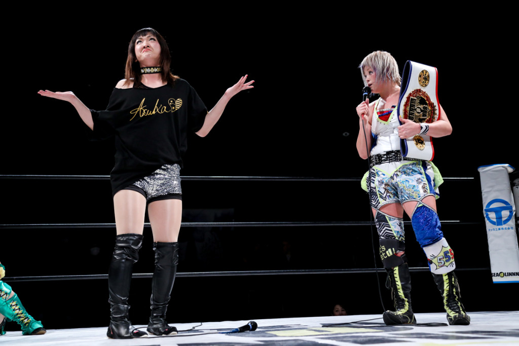 世志琥「みんな、ベルトを持ってる高橋奈七永に興味があると思うけど、うちはベルトがあってもなくてもお前と戦いたい。それだけは忘れないで下さい。そこんとこ、ヨロシク」