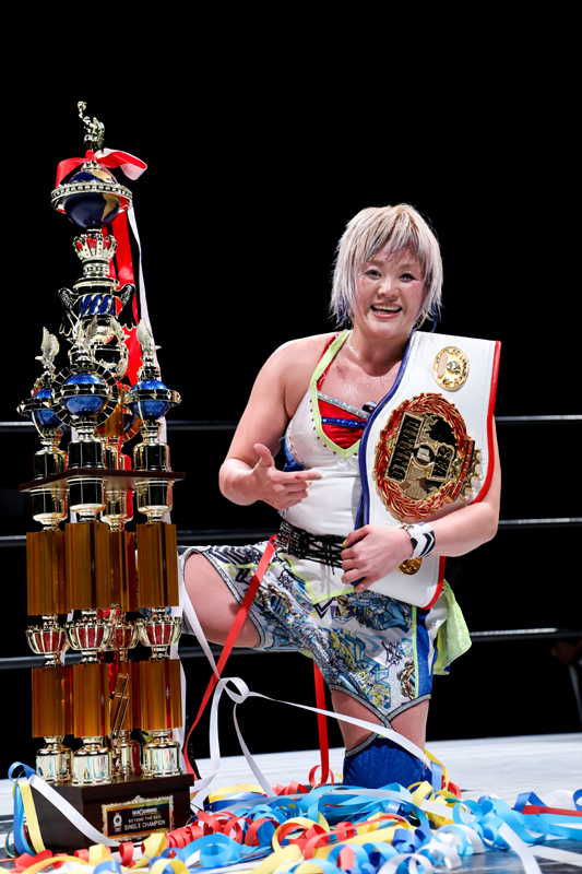 追い込まれる奈七永だったが、カウンターのサイドバスターで流れを変えると今度こそはワンセコンドEXにつなげて3カウント。激闘を制した奈七永が初代王者に輝いた。惜しくも敗れた中島にもファンから「安里紗」コールが送られた。